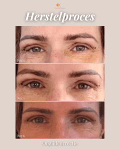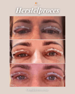 De meeste cliënten voelen zich na ongeveer één week al comfortabel genoeg om hun dagelijkse activiteiten op te pakken. Op dat moment worden vaak de hechtingen verwijderd. Het herstelproces is dan al goed op gang: blauwe plekken en zwelling nemen af en je ogen beginnen hun nieuwe, frisse uitstraling te tonen.